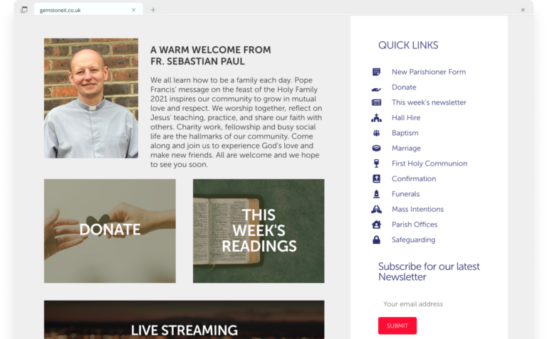 They wanted a simple website to share updates, events, and the intertwined histories of both churches. We worked closely with them to design a user-friendly website. The goal was clarity and functionality, making sure the platform was easy for visitors to navigate. Additionally, we integrated a straightforward backend for the church team to post regular updates as well as calendar integration for timely and effortless site updates.